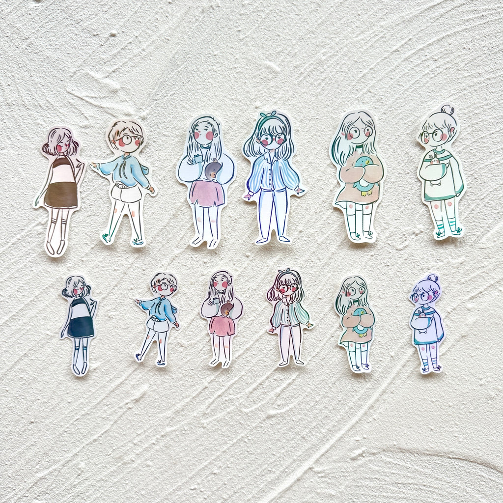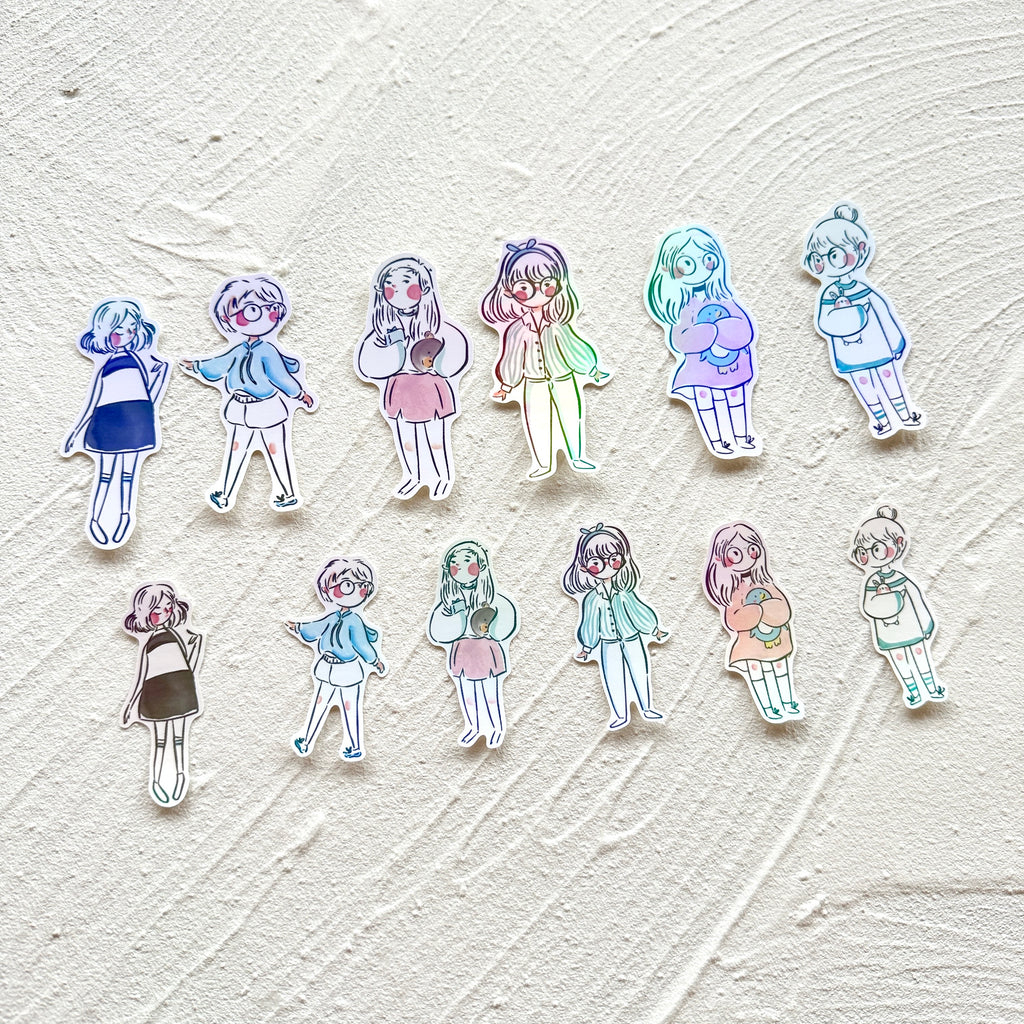 Die Cut Sticker : Sketchbook Girls // Hologram Overlay