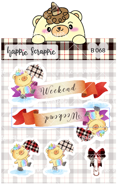 Planner Stickers : Umbrella Beariecorn Weekend Banner (B068)